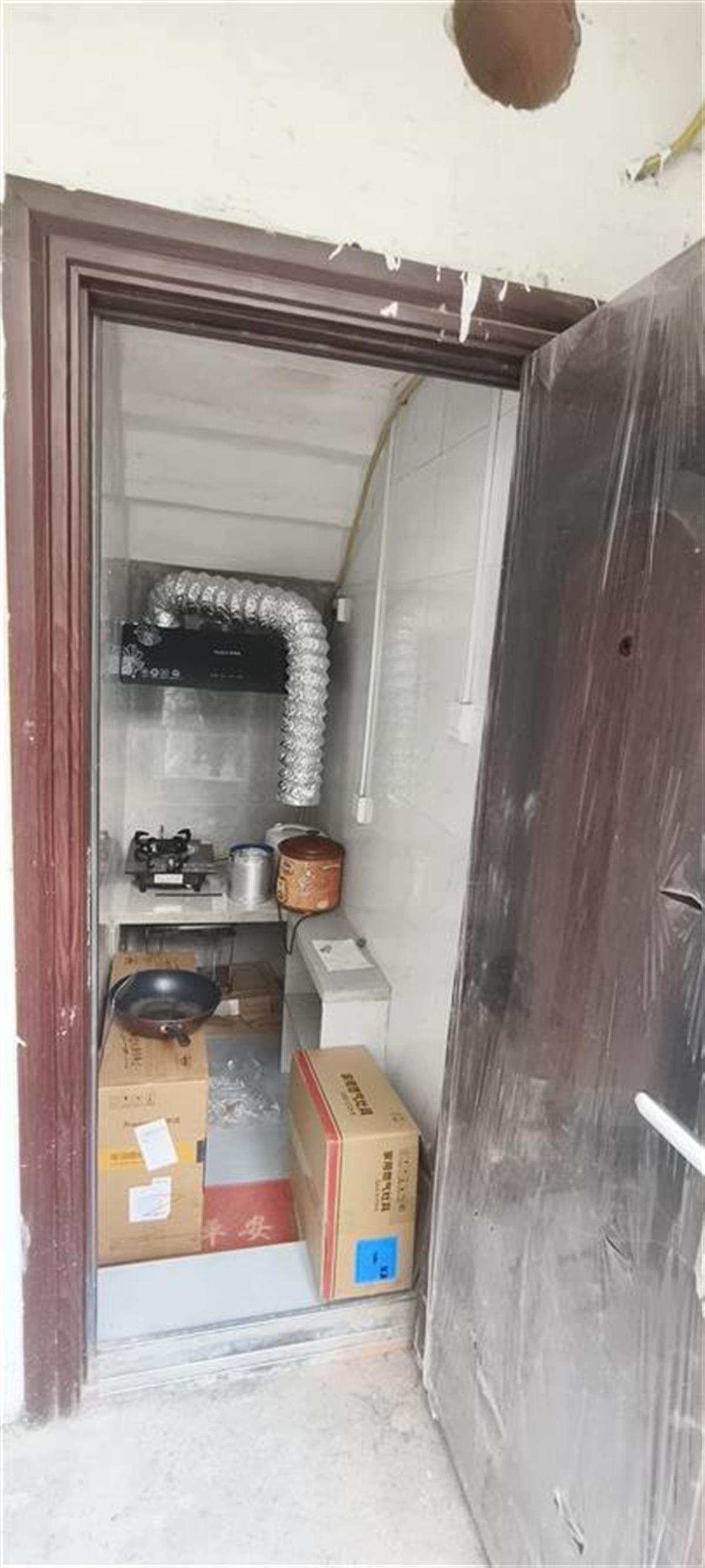 经了解,该厨房是该楼栋一楼一住户为了招租违规占用建筑而成,屋内各类厨具都已置办,并私自从自己家中燃气表具衔接了一条软管牵引到该厨房,因为厨具等装置还未完结,至巡查人员发现时,该厨房还暂未运用。