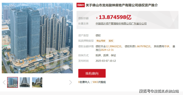 该项目由佛山市龙光骏绅房地产有限公司负责开发,但随着母公司宣布暴雷,该房企也陷入危机。