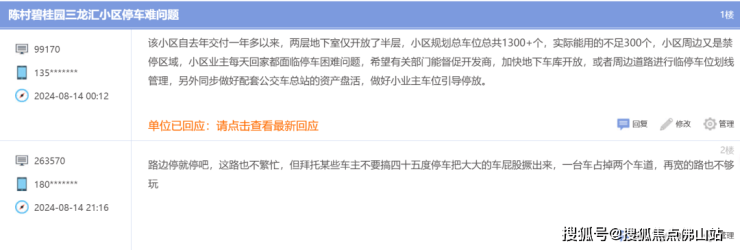 对此,陈村镇城建和水务办公室回复,据开发商和物业公司反馈,陈村卓越碧桂园天悦湾二期B区地下车库因未开放使用,目前天悦湾B区业主可先在A区地下车库临时停放车辆,暂时缓解停车问题。